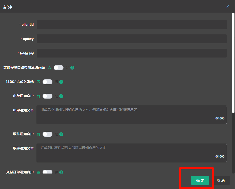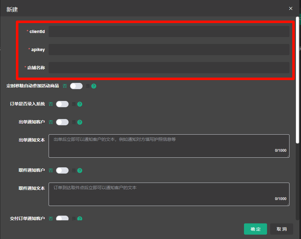 填写店铺信息 红色*号为必填项,其余为选填项,可以先不填,后续根据自己需求再补充,店铺名称随便自己起个方便记忆的名称即可,clientId和apiKey的获取方式继续往下看