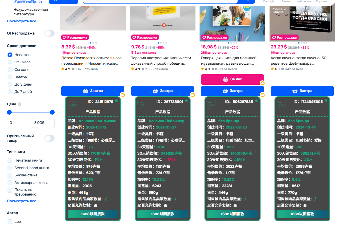 小助手插件可以查看前台商品数据,方便在浏览竞品的时候做数据分析,包含销售额、销量、订单、创建时间、加购、重量等数据。同时支持1688一键搜同款