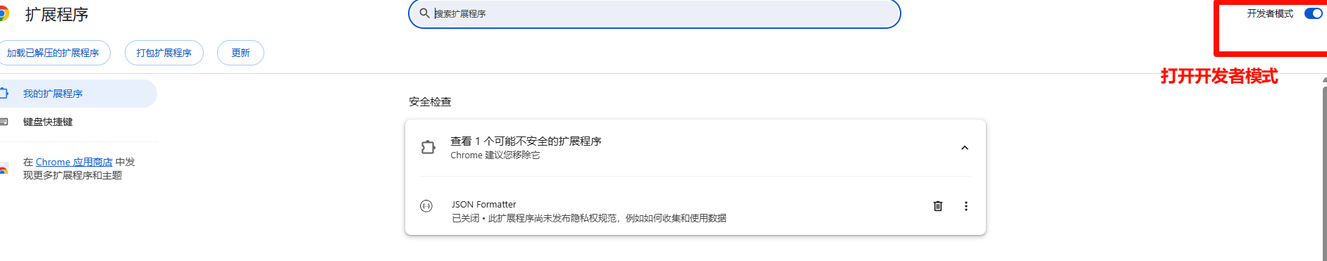 - 打开开发者模式 (这里以谷歌浏览器为例,其他浏览器的操作类似)